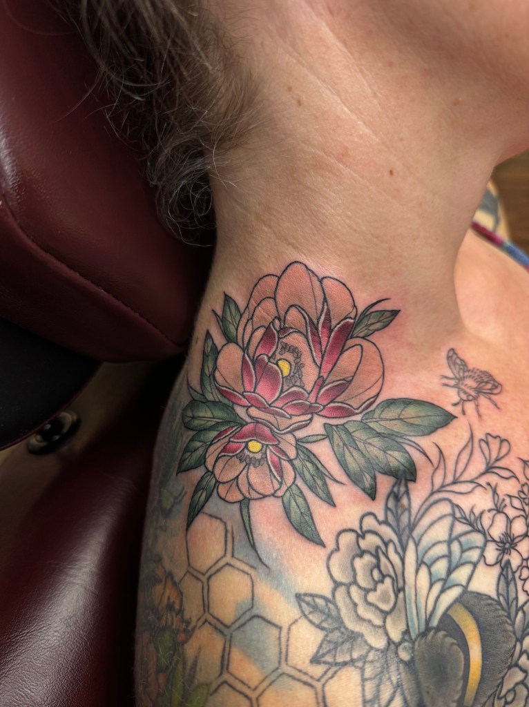 As an artist, it’s my goal to provide you with a calm, unique to you experience on top of getting some sick new ink! I always love some florals and fauna. I currently lean to a more color neo-traditional style and an illustrative style, but am up for any challenge clients have to offer!